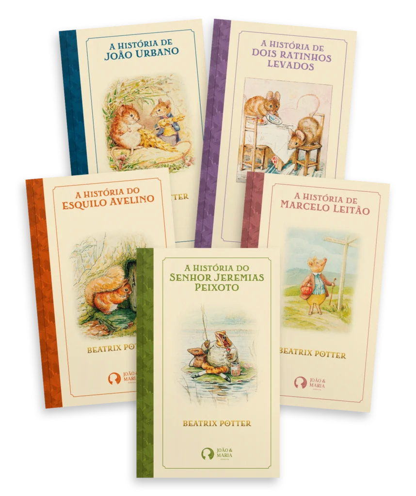 Ao adquirir o combo da Editora João & Maria, você coloca nas mãos das suas crianças (e no seu coração) o mesmo encanto que conquistou o mundo há mais de 120 anos — em um objeto literário pensado para durar mais 120. Nossa coleção respeita o formato menor e as ilustrações originais que Potter tanto defendeu — exatamente como deveriam caber nas mãos (e no imaginário) das crianças!